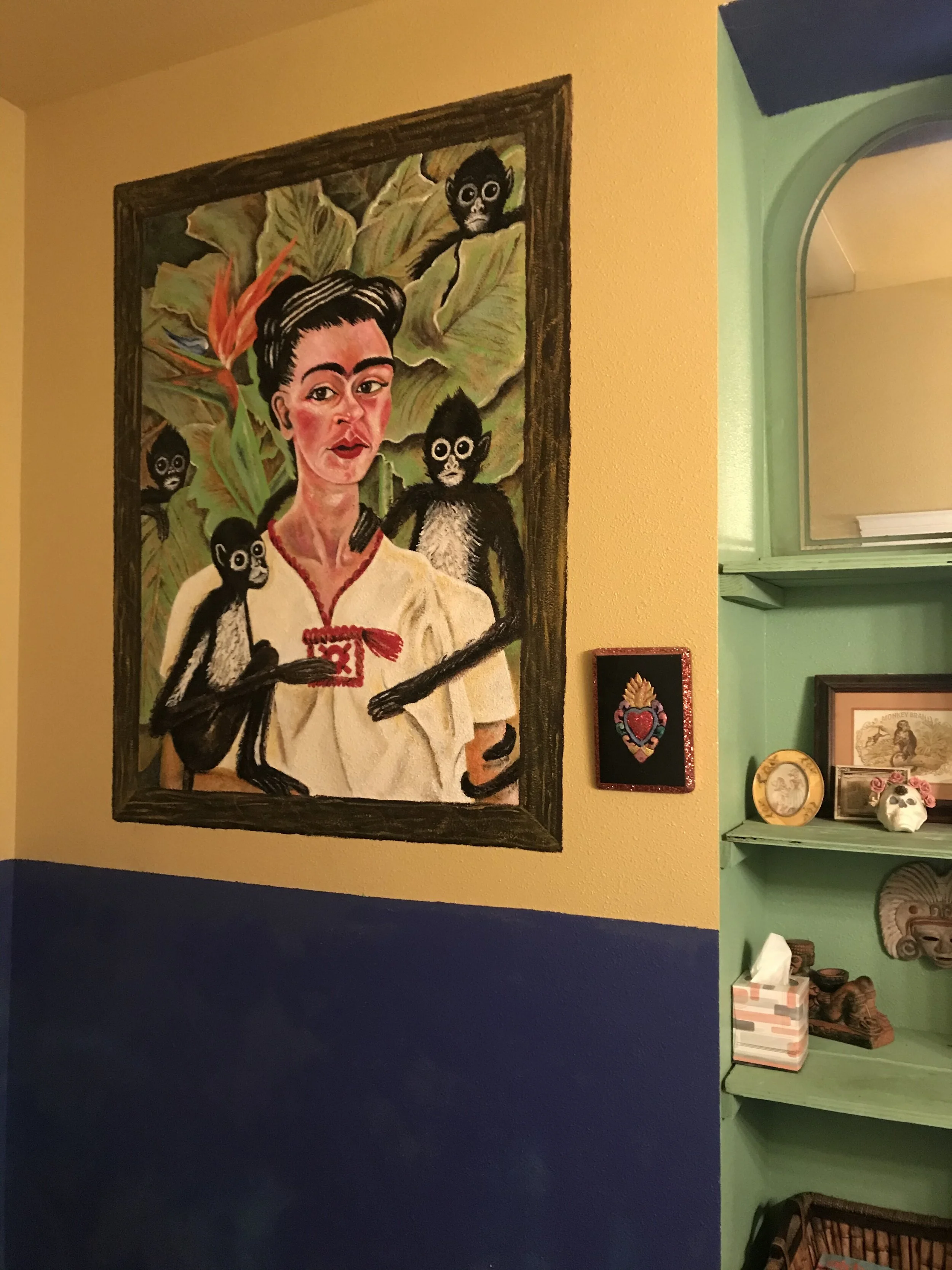 This recreation of Frida’s 1943 ‘Self Portrait with monkeys’ is in one of the Georgetown Arts and Cultural Center shower rooms. The GACC offers artists and retailers studios and operates as a Bed and Breakfast, It’s been a hub for art in the Georgetown neighborhood with monthly art shows since the early 2000’s. I spent a little over a year residency at GACC around 2014. One of my favorite places in town!