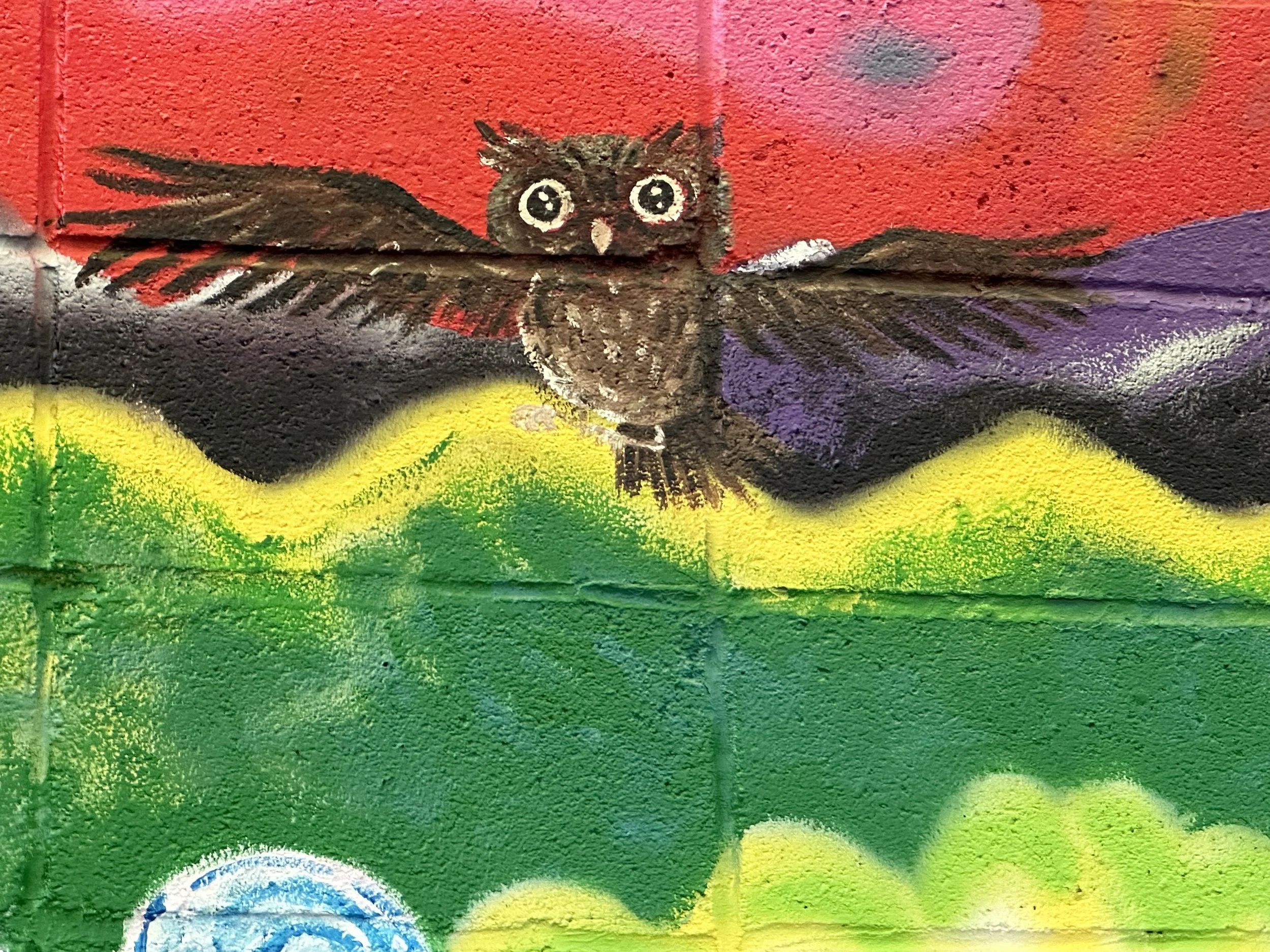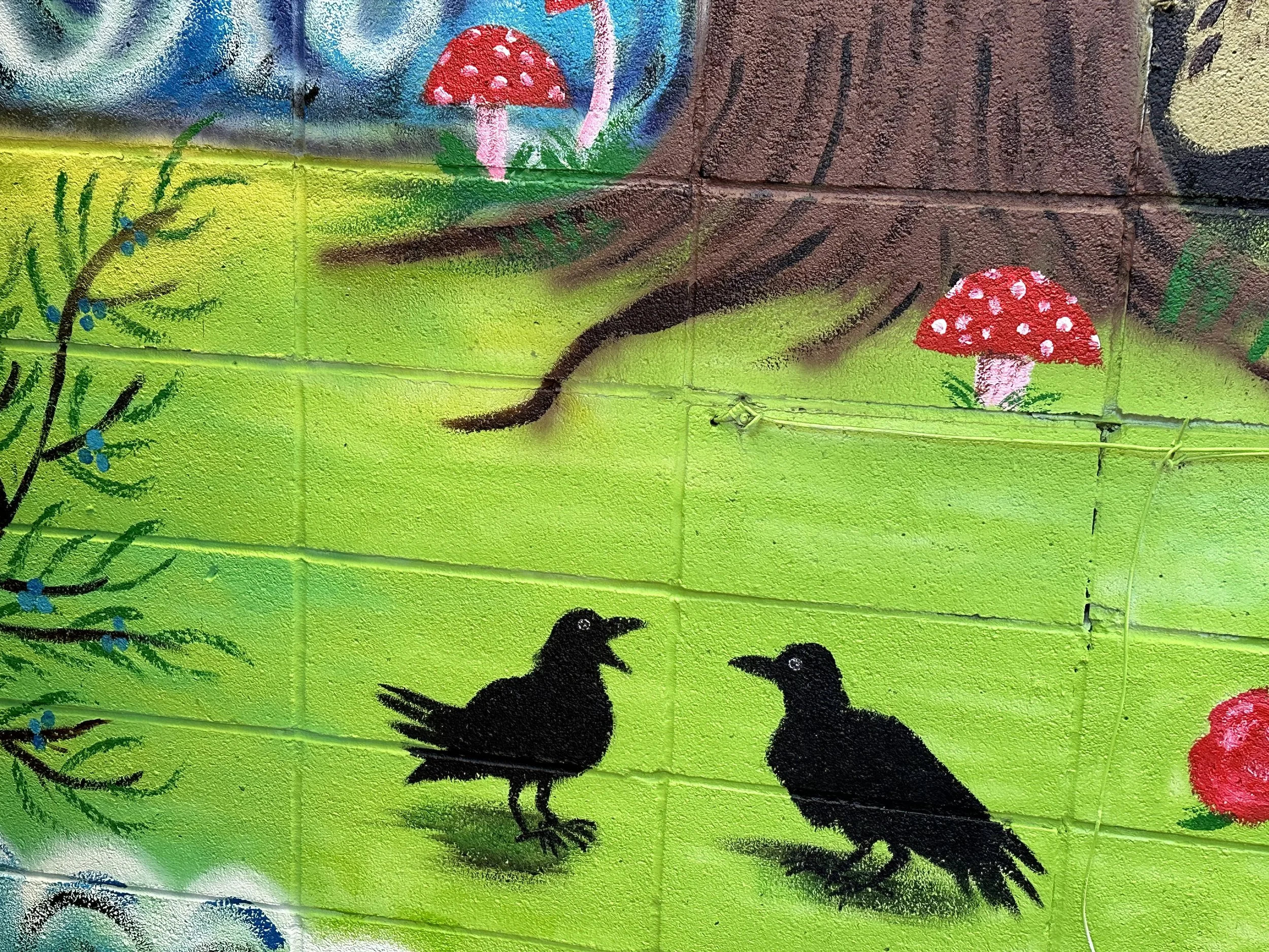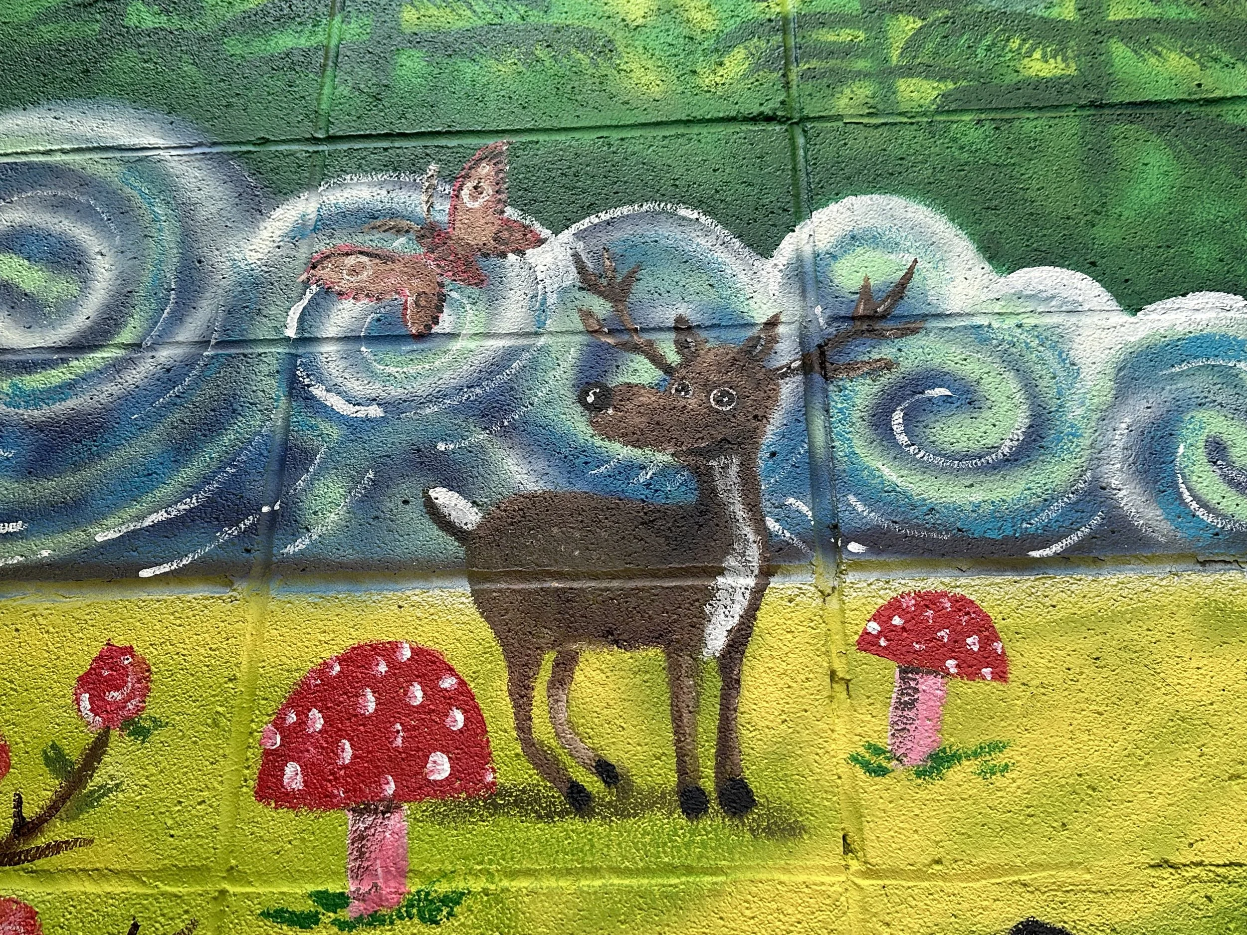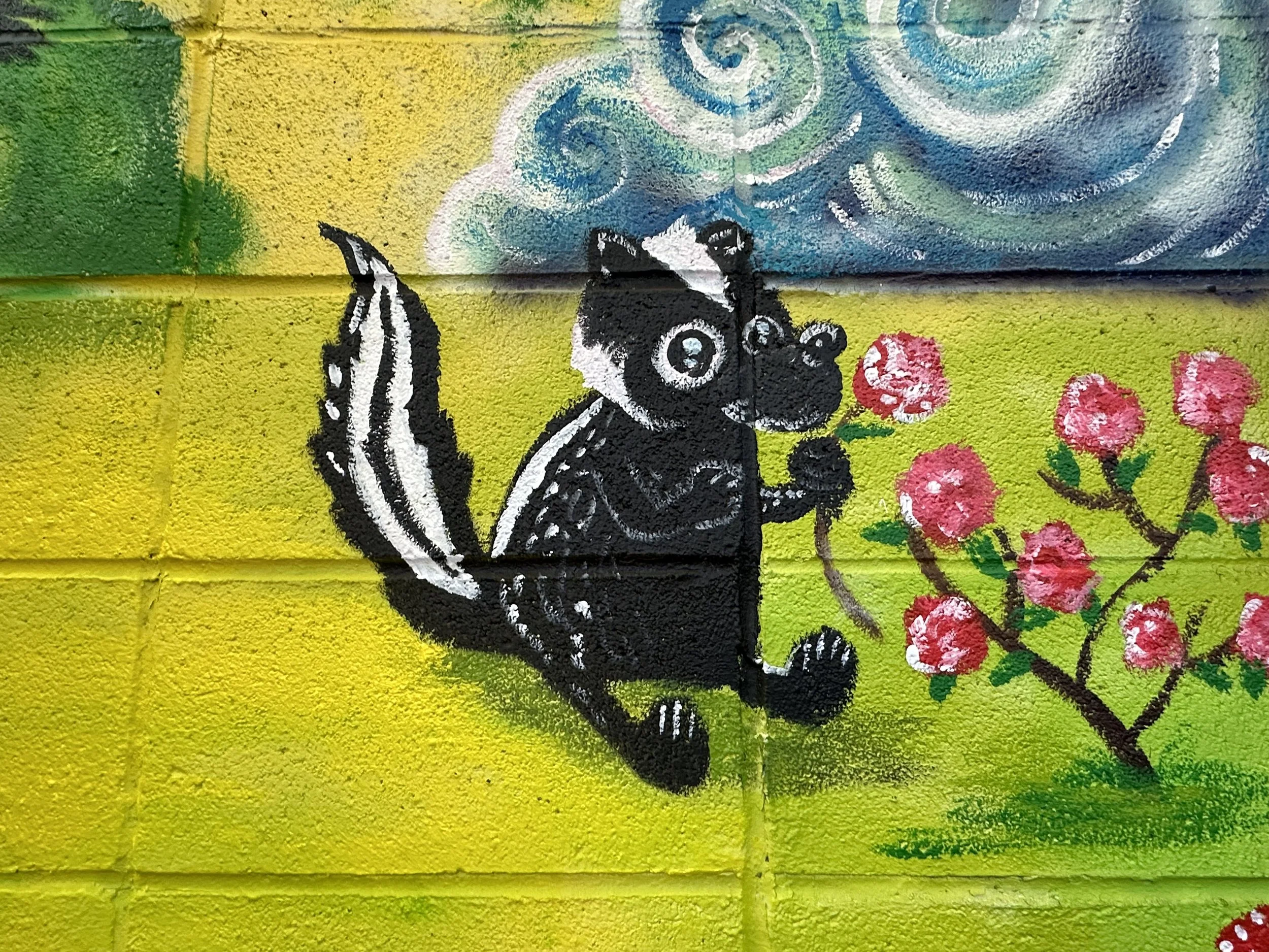 This 40’w x 20’h mural, featuring Little Squatchee and his woodland friends, lives at a private residence in Portland OR.